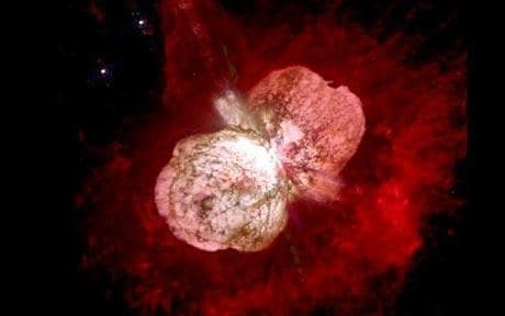 Smaller stars like our Sun will turn into white dwarfs when they die, but stars that are around 20 times bigger that the Sun will explode into a supernova. This occurs when the natural pressure of the star is too great for the gravitational pull of the core; the outer layers are flung out and the core collapses in on itself, this then collapses further into a singularity which is a point of infinite density, which creates the black hole.