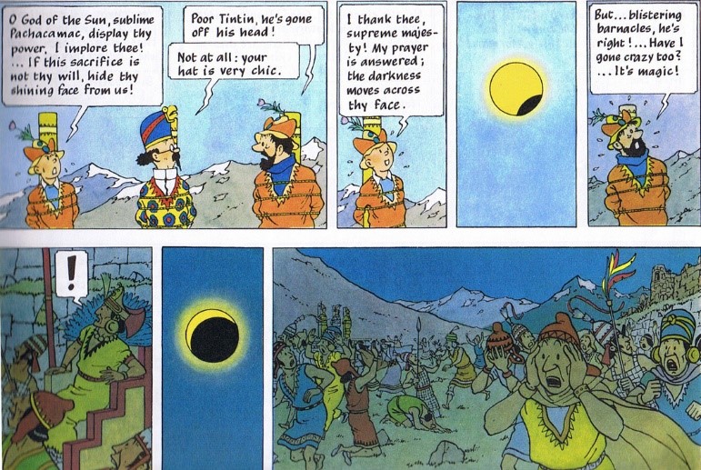 The word “eclipse” comes from the Greek ekleipsis, which roughly means abandonment. This feeling of abandonment was felt particularly by the Incans who worshiped the Sun god Inti. When the Sun disappeared, they felt that their leader and god was cross with them. Although they rarely practised human sacrifice, a wave of killing would follow eclipses to try and appease Inti.
