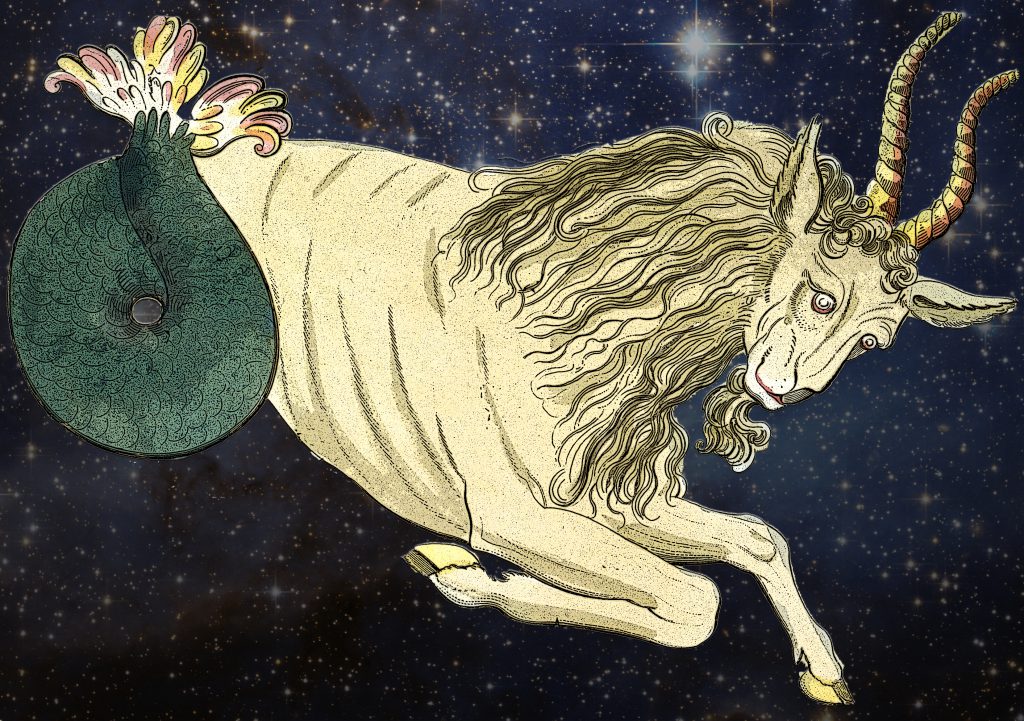 The word Capricornus comes from Latin. Loosely translated it means “horned goat”, “goat horn” or “having horns like a goats”. It is commonly represented in the form of a sea-goat: a mythical creature that is half goat, half fish.
